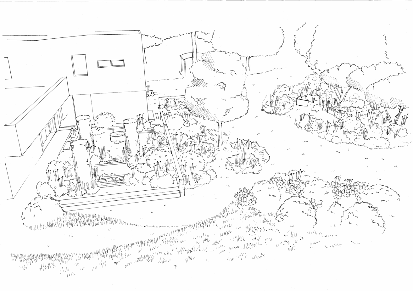 We were invited to design the gardens that surround a new timber clad house, built to replace the existing family home.