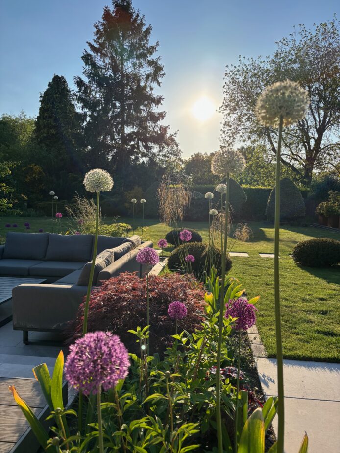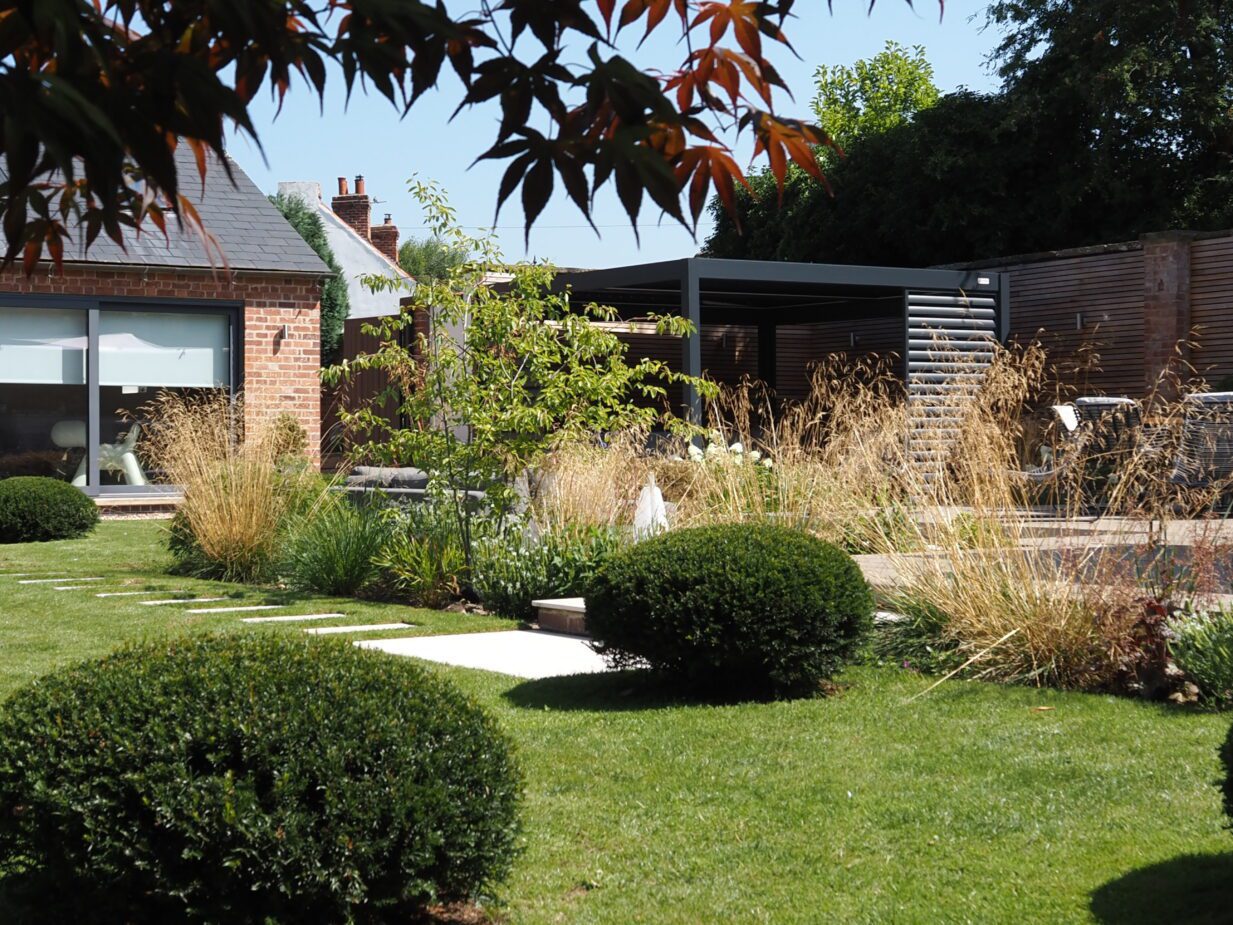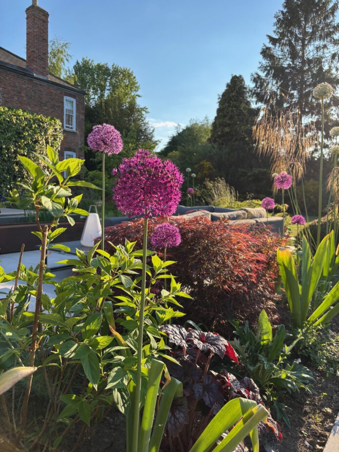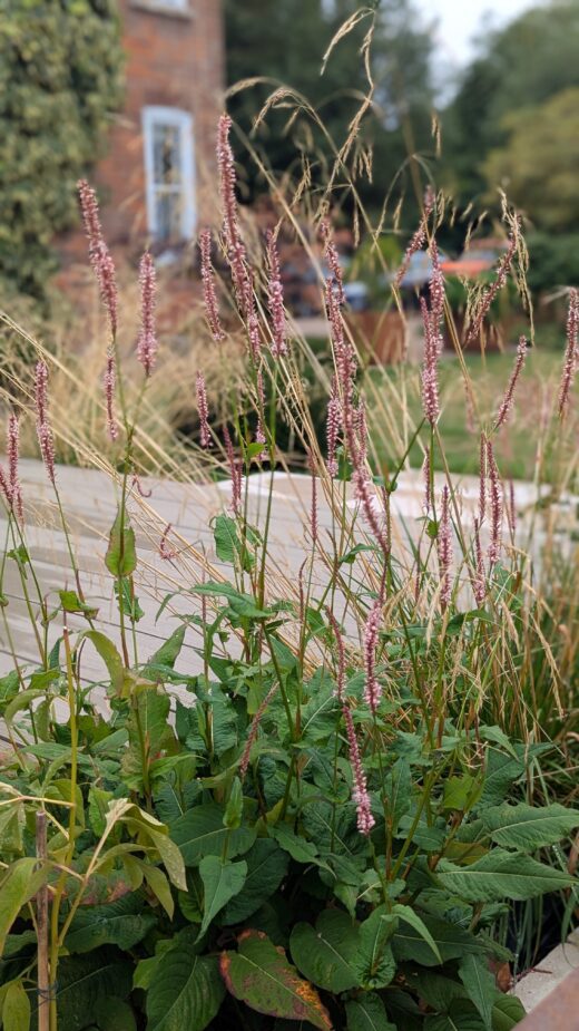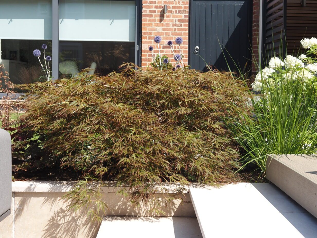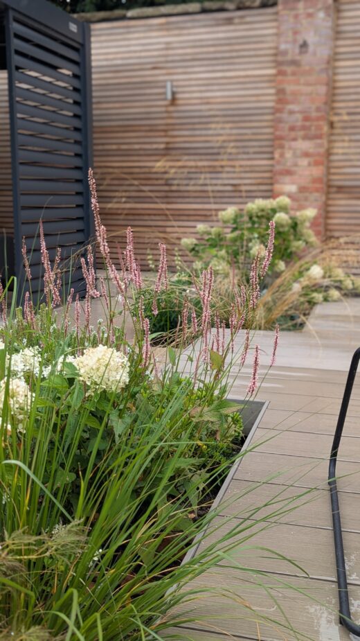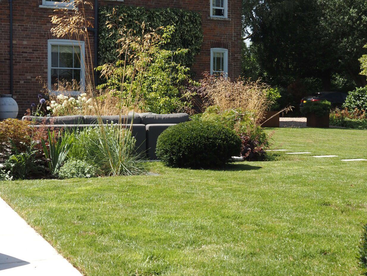 Our clients, inspired by historical white gardens, requested that the planting should be kept to a palette of whites and pale pinks with some pops of blue and purple scattered through. We used a mixture of grasses, perennials, shrubs and bulbs to create a scheme that would give year round structure, colour and interest while remaining low maintenance. Hand-sculpted Yew domes were carefully placed through the space to provide structure and to link the newly design and planted area with the wider space.