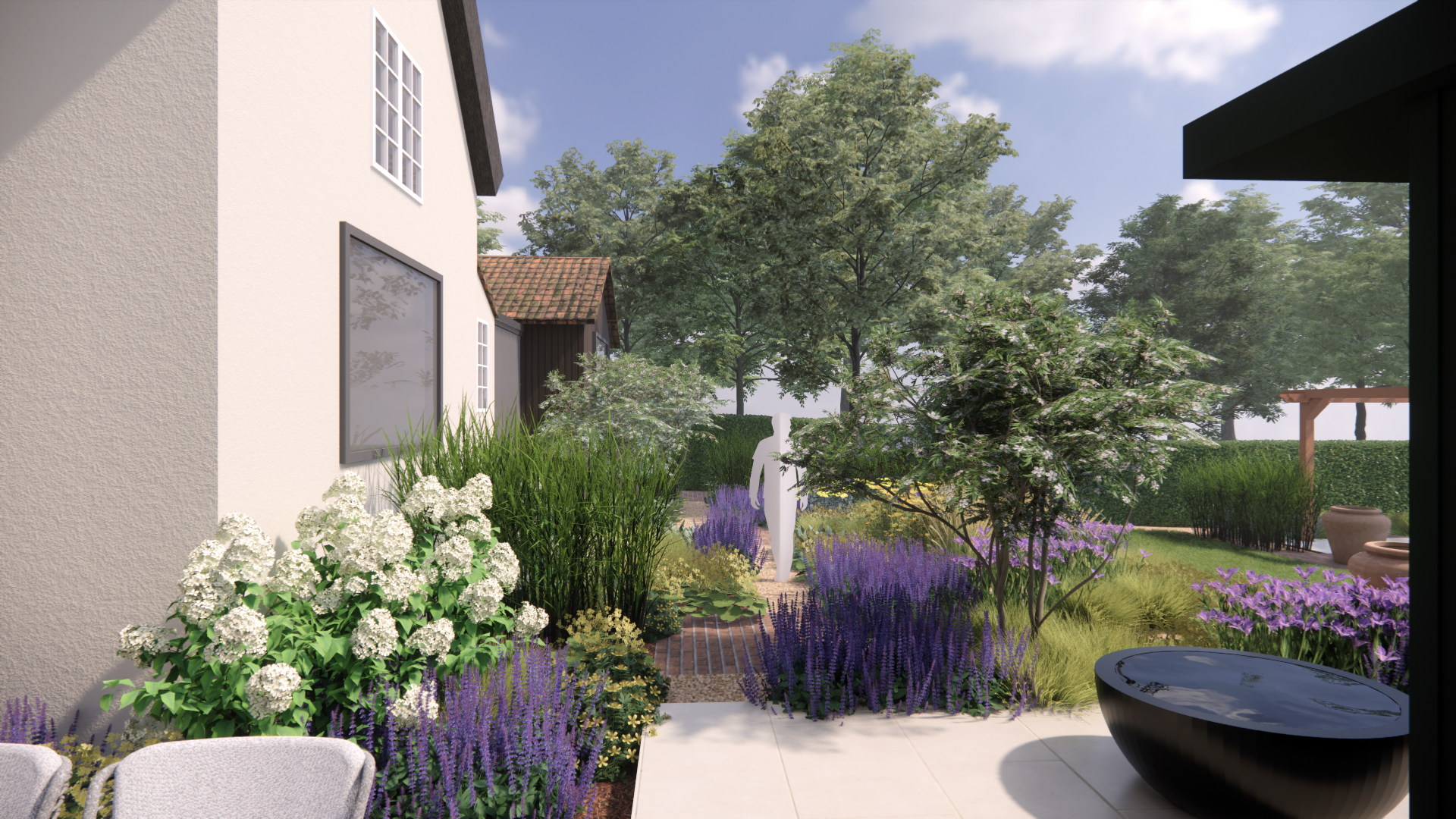 We were asked to redesign the gardens for a listed thatched property in a picturesque village in the Cambridge countryside. The existing garden was mostly laid to lawn with a couple of small paved areas, and out clients wanted a contemporary cottage-style garden that would fit with the property more cohesively, while creating spaces for their young family to enjoy.
